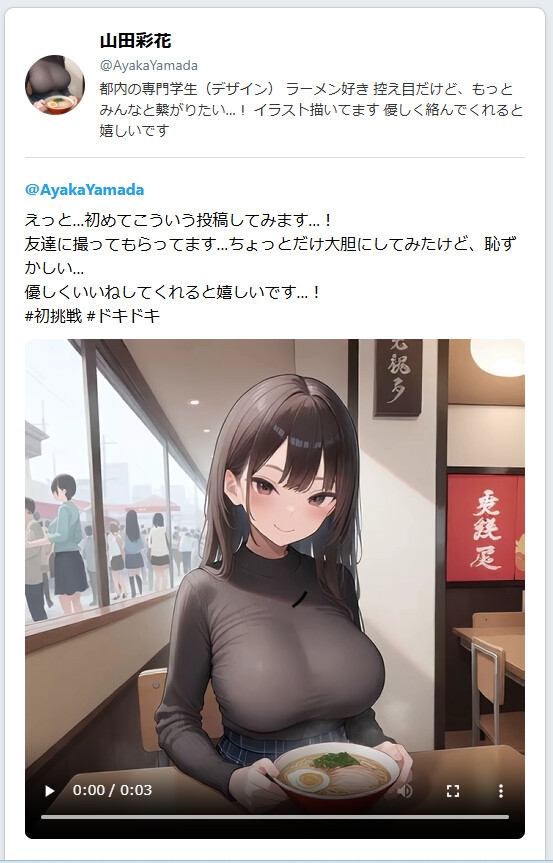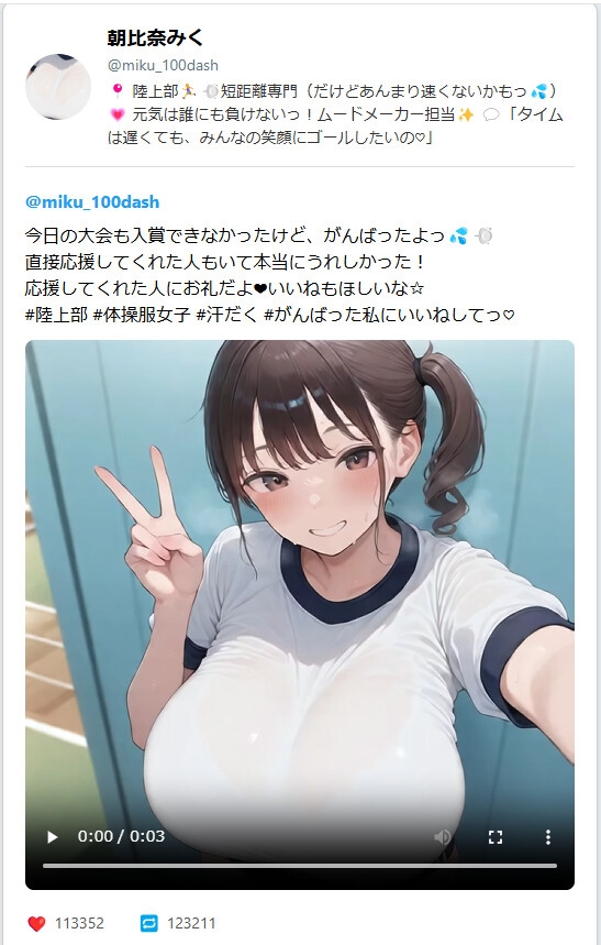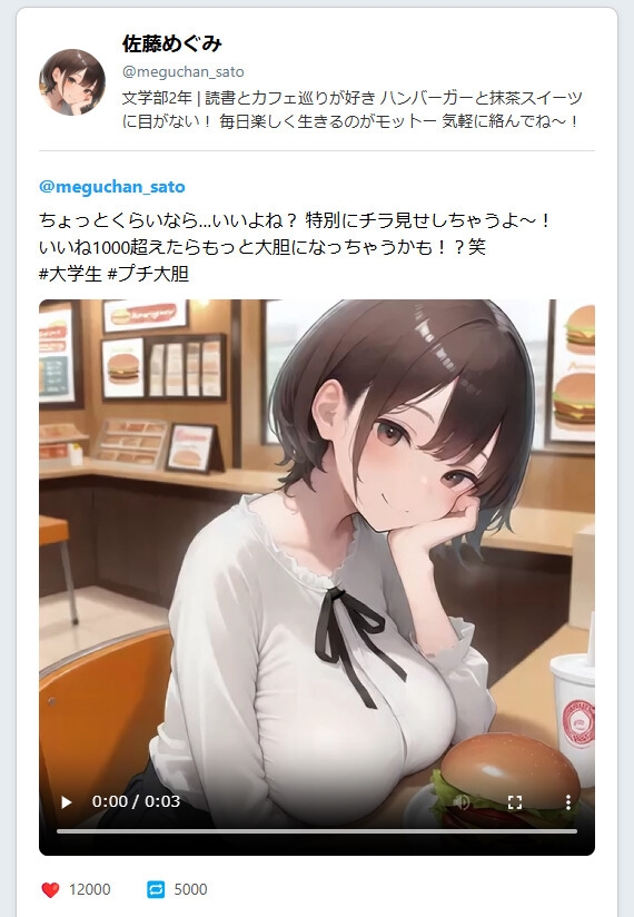 各シチュエーションで3つの短い投稿と4秒程度の短いAIアニメがあります。
